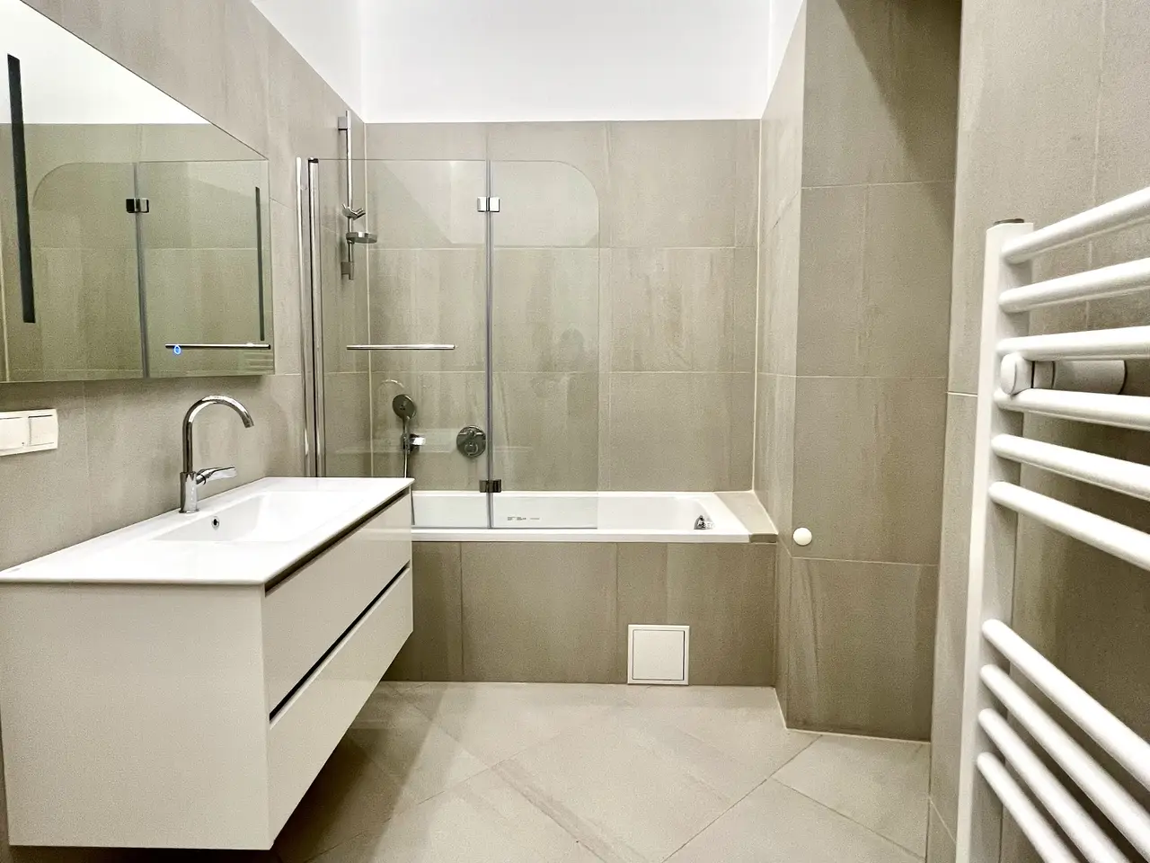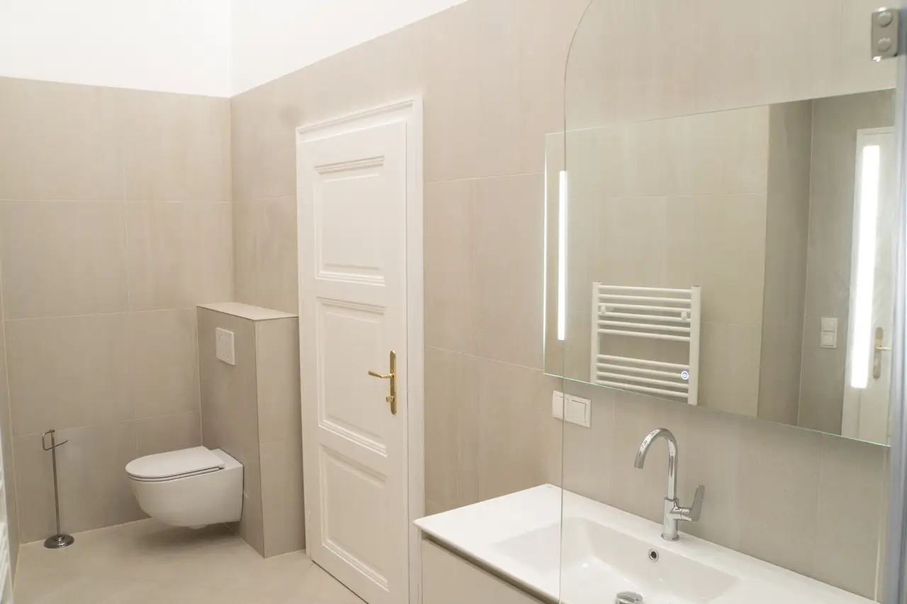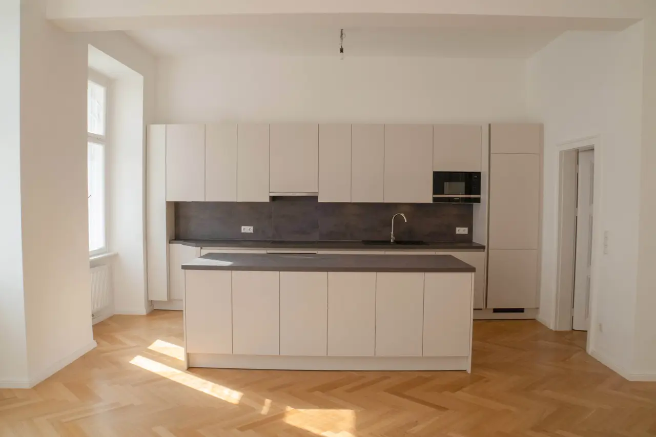 Die hochwertige Ausstattung - Während Sie durch die hohen Decken, die Flügeltüren und den hochwertigen Fischgrätparkett vom Charme des typischen Wiener Altbaus umgeben werden, punktet die Wohnung mit allerlei hochmoderner Ausstattung. Gerade eingebaute Klimaanlagen in allen Zimmern, geniale Beleuchtung, die luxuriöse Küche mit Kochinsel und die hochwertig ausgestatteten Badezimmer mit Handtuchheizkörpern und Smart Mirror sind nur einige der zahlreichen Beispiele, die diese Wohnung so besonders machen.